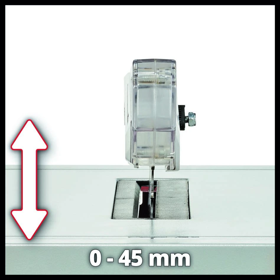 - La lame de scie (Ø210×30 mm/24 T) est réglable en hauteur en continu (0-45 mm).