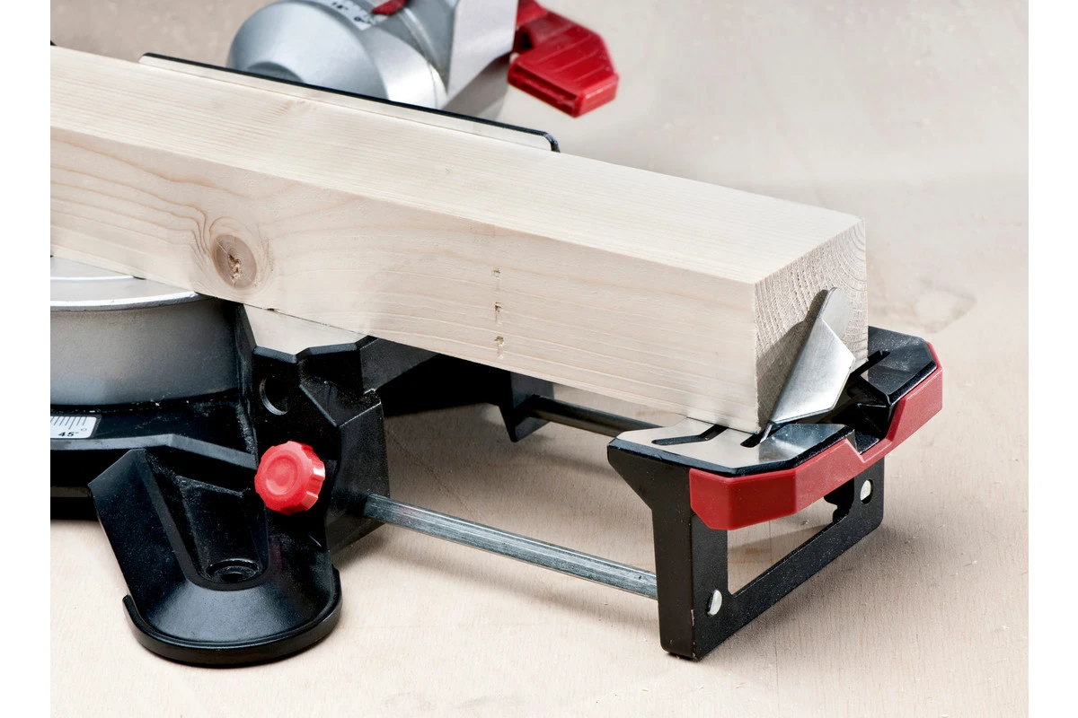 - Tête de scie inclinable à gauche avec réglage supplémentaire de l’angle pour les contredépouilles